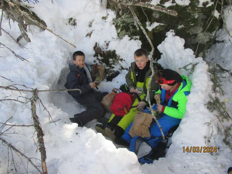 Jeudi nous nous sommes levés à 7h30, on a déjeuné. On a préparé notre pique-nique, on pouvait prendre des choses différentes dans une banque réfrigérée. On est allé se mettre en tenue de ski, nous sommes partis faire une balade en ski dans la Vallée d’Avérole. En revenant on a vu un renard, il était tout petit et on le voyait à peine. A midi nous avons pique-niqué dans nos igloos. Après le pique-nique on a aidé Laïs et Tiffany à finir leur igloo. L’après-midi nous sommes allés au Rocher du Château en ski. Dans la journée on a fait presque 20km. On était morts!