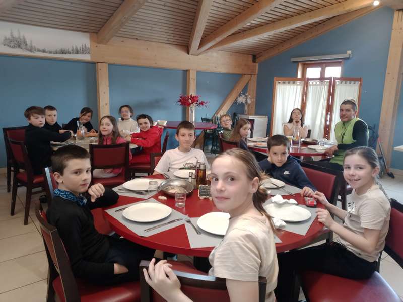 Lundi matin nous sommes partis à 7 h du matin en bus. Nous avons roulé pendant 5 heures et 30 minutes et nous sommes arrivés à 12h30. On est rentrés, on a posé nos valises pour aller manger. Nous avons pu aller dans les chambres. Après nous sommes allés nous équiper en skis, bâtons et chaussure. On a commencé à apprendre à skier et nous sommes tous tombés! A 16h on a goûté et après on est allés faire une partie de biathlon. Nous avons fait des tirs avec des carabines lasers sur 5 cibles. Quand on touchait les cibles ça devenait blanc. Après on est allés à la douche et on s’est couché vers 22h!