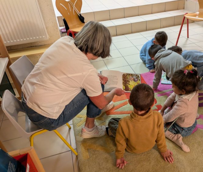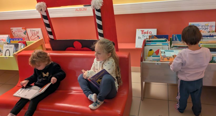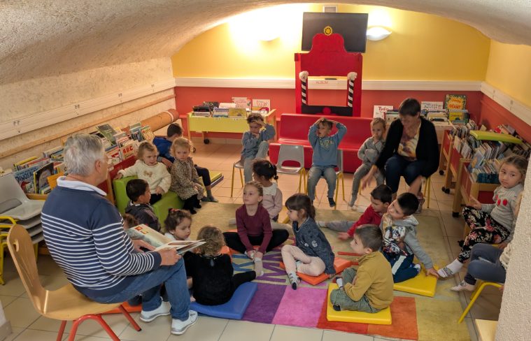 Jeudi 9 octobre, nous nous sommes rendus à la bibliothèque municipale de Bains où Annie Borie et Annie Décolin, bénévoles, nous ont accueillis dans la grotte aux histoires pour la lecture d’un album « Le petit pêcheur et la Baleine » de Courtney Tickle. Nous avons également choisi des albums que nous allons rapporter à la maison (merci de nous les retourner le jeudi matin). C’est avec plaisir que nous y retournerons une fois par mois pour faire le plein d’histoires !