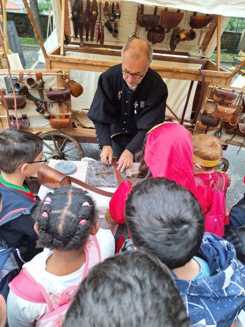 Les élèves ont assisté à un spectacle et ont participé à un atelier au sein d’un camp. Les Cm1 et Cm2 ont, par exemple,découvert le travail de la forge, du cuir, du tailleur de pierre, de l’herboriste ou encore du cordier.