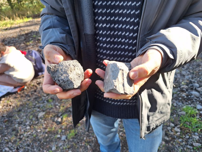 Toutes les classes de l’élémentaire (du CP auCM2) se sont rendues à St Christophe sur Dolaison dans le cadre du P’tit tour à pied, organisé par l’USEP. La météo de ce vendredi 27 septembre n’a pas été trop capricieuse : malgré le vent, les élèves ont pu rester au sec durant toute la durée de la randonnée. La marche était régulièrement ponctuée de lectures de paysages et d’explications sur le monde minéral et végétal.