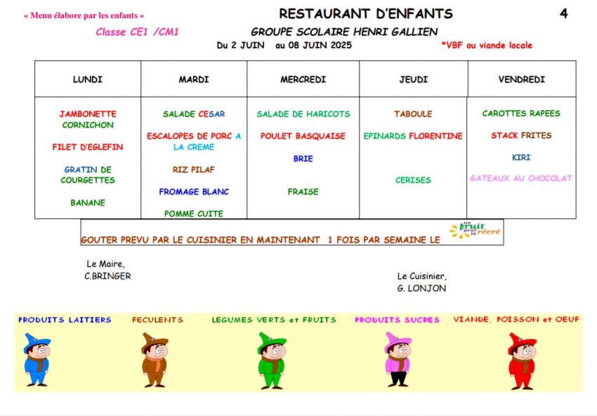 Cette semaine, les menus de la cantine ont tous été élaborés par les élèves de Ce1 et Cm1.
