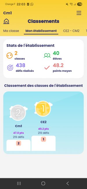 Nous remercions les familles qui ont envoyé des photos ou participé à la réalisation d’un ou plusieurs défis. Bravo à tous ! Les 2 classes ont ainsi collecté 219 points chacune.