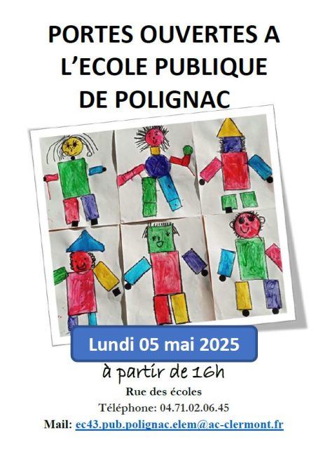 Téléphone école maternelle : 04/71/09/16/64 Téléphone école primaire : 04/71/02/06/45 Adresse mail : ec43.pub.polignac.elem@ac-clermont.fr Cantine : 04/71/02/70/86