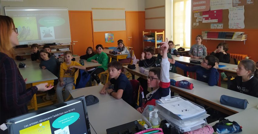 C’est dans le cadre du projet « l’art d’être en forme » piloté par la MGEN dans lequel s’investit l’école Les Copains de Saint Julien Chapteuil que les CM2 ont pu recevoir Mme Cindy Marotto. Conseillère pédagogique spécialisée dans les arts visuels, elle a proposé une démarche très appréciée par les élèves pour appréhender les problématiques liées à l’usage des écrans : à travers l’observation et le décryptage d’une série d’œuvres artistiques mettant en lumière diverses facettes de l’utilisation des écrans, les élèves ont pu s’exprimer sur ce thème et relever à la fois les potentiels dangers et les opportunités qui en découlent.