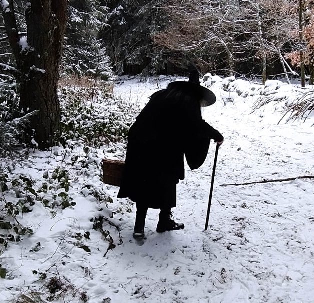 Outillés de leur clé de détermination, les enfants de CE se sont appliqués à rechercher les empreintes des animaux et à les identifier ; écureuils, cerfs, lapins et lièvres ont laissé de nombreux indices répondant ainsi à la curiosité des enfants. Après un repas bien mérité, pris au coin du poêle du chalet du Meygal, les enfants sont repartis en promenade, chaussés de raquettes. Au détour d’un chemin, ils ont fait une rencontre inattendue. Une sorcière, la Marie récoltait des branches de bois mort pour se chauffer. Vieille de 150 ans, elle leur a conté les secrets de cette grande forêt née au croisement de plusieurs communes et plantée par les hommes.