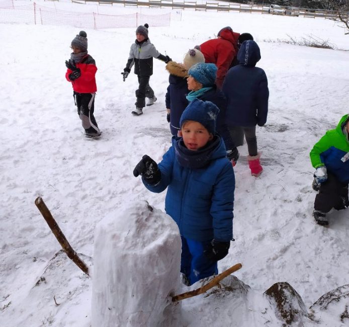 Bien emmitouflés, l’enthousiasme des petits randonneurs n’a pas été refroidi par les conditions météorologiques. Dans un paysage cette fois-ci enneigé avec des arbres saisis par le gel , la randonnée matinale leur a donné l’occasion d’observer la nature avec un nouveau regard.