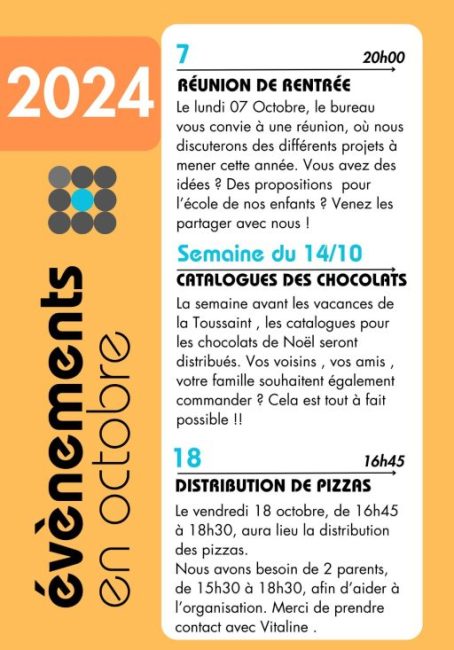Ce vendredi 11 octobre 2024, ont été élus comme représentants de parents d’élèves :