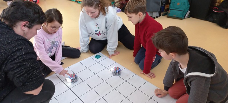 Après cette première séance, les CE2 et CM1 vont poursuivre ce travail en apprenant à programmer une machine, à couper des erreurs (bugs) et à résoudre des problèmes et bien d’autres choses encore…