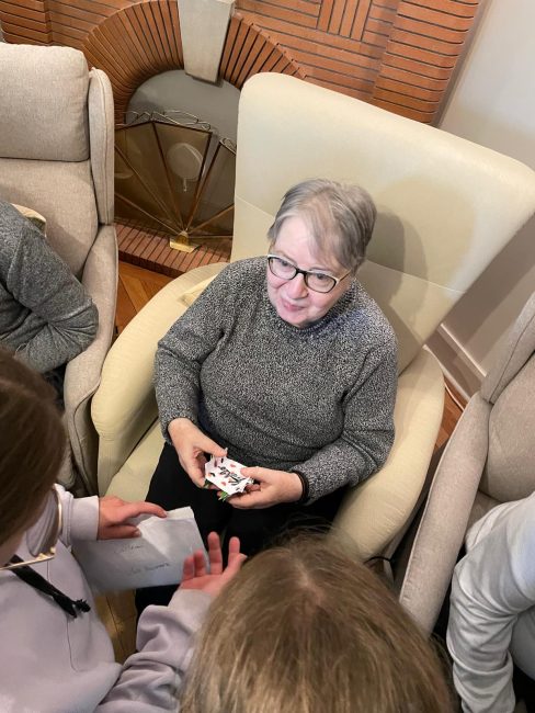 A la fin de cette prestation, les écoliers ont offert deux petits présents, imaginés et fabriqués par eux-mêmes, à chaque résident : des carrés magiques et des marque-pages pour garder l’envie de lire !