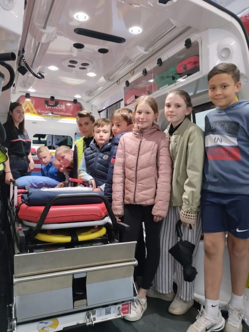 - Découverte de la « partie sanitaire » avec Anaïs qui a présenté les différents équipements et accessoires présents à bord d’une ambulance.