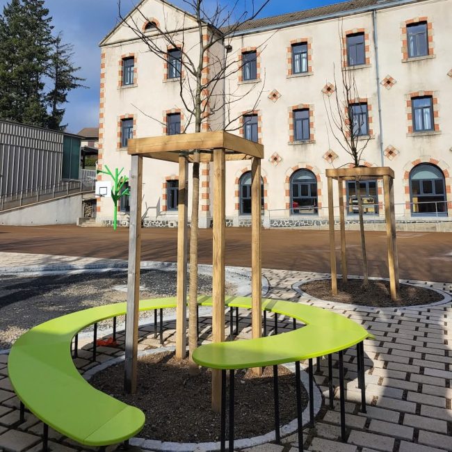 Encore 6 semaines de patience pour terminer notamment les enrobés, le bardage de la cabane, les plantations de pied d’arbre et autres massifs et tous pourront profiter pleinement de la nouvelle cour.