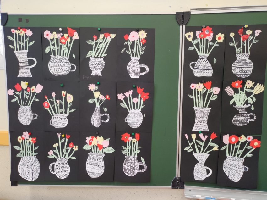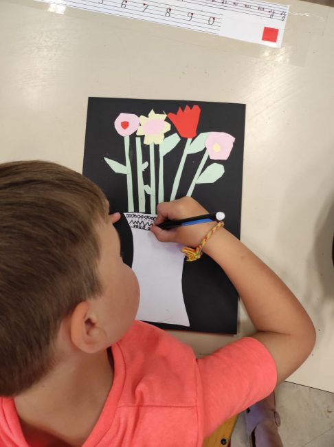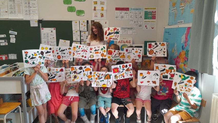 Enfin, un atelier d’arts plastiques a permis aux élèves de mettre en pratique ce qu’ils venaient de découvrir. Guidés par Fanny Ducassé, chaque classe a pu réaliser des illustrations ayant pour thématique l’album abordé. Les enfants ont fait preuve de beaucoup de soin donnant lieu à de très belles productions.