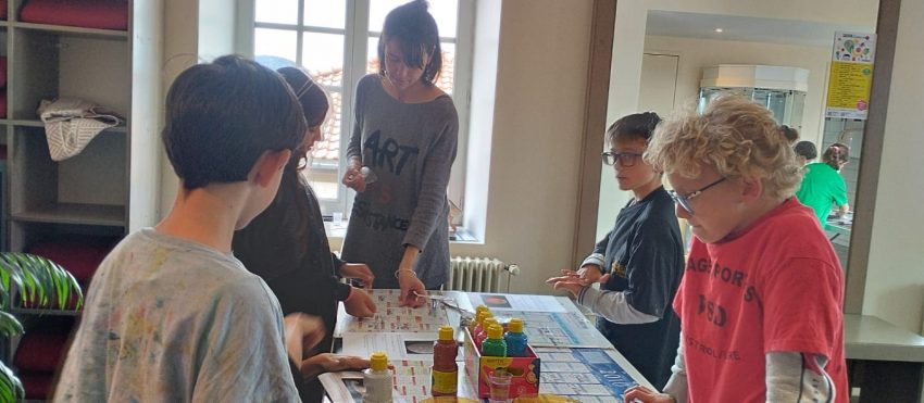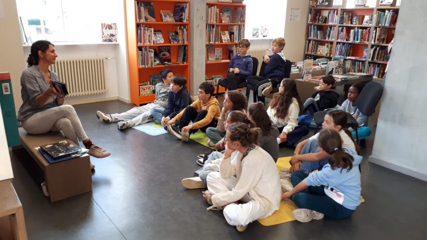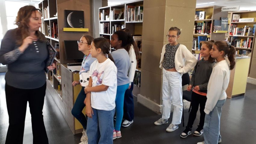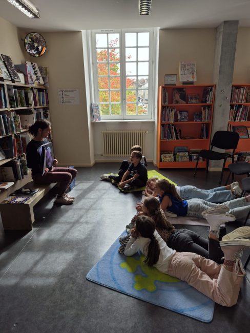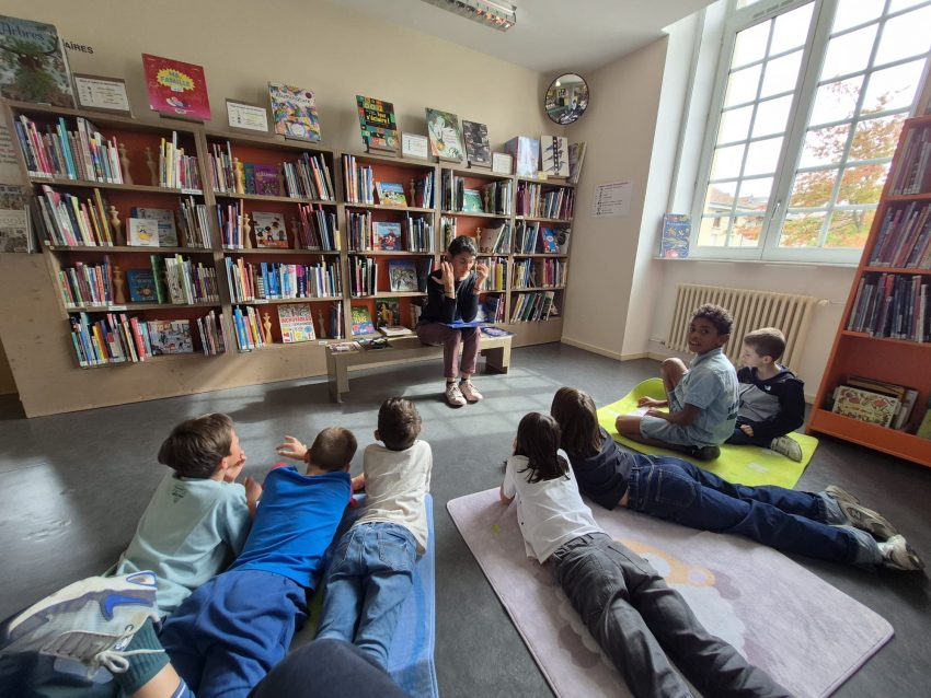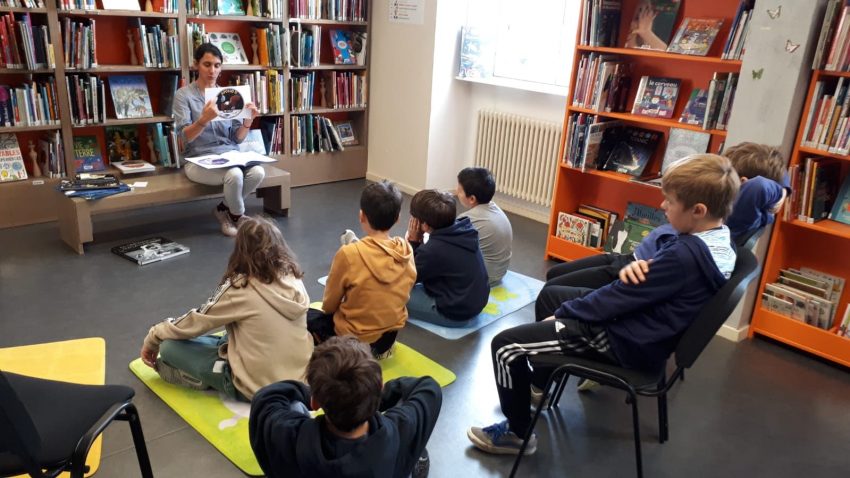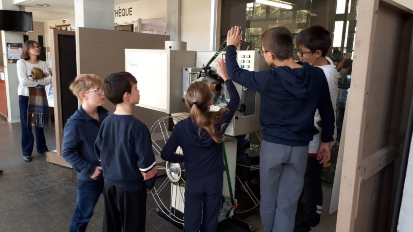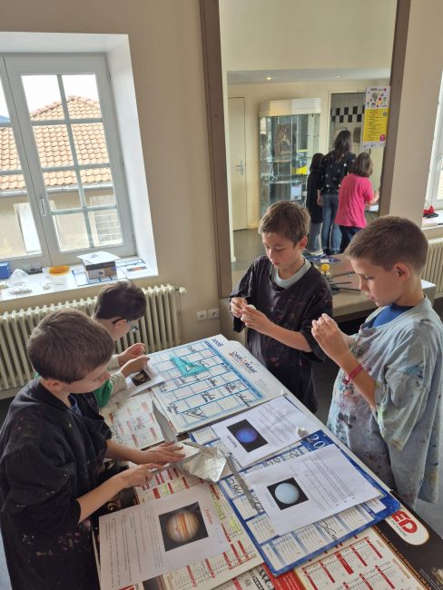 Dans le cadre de la médiation scolaire, les élèves des 2 classes CM1 et des 2 classes de CM1 ont été accueillis à la médiathèque La Grenette pour 3 ateliers successifs sur le thème de l’astronomie.
