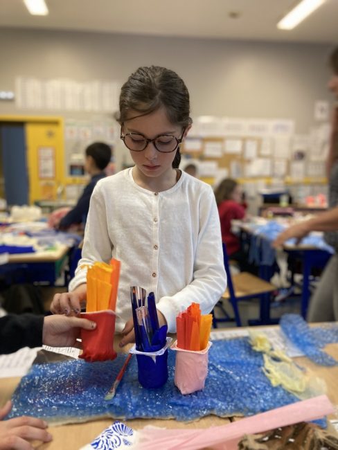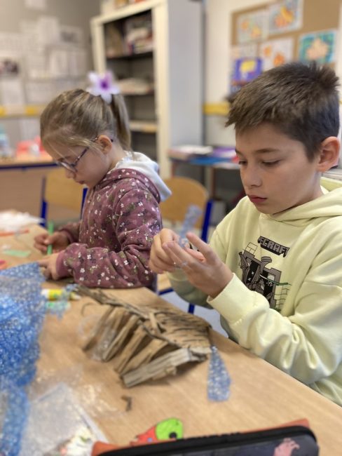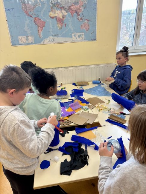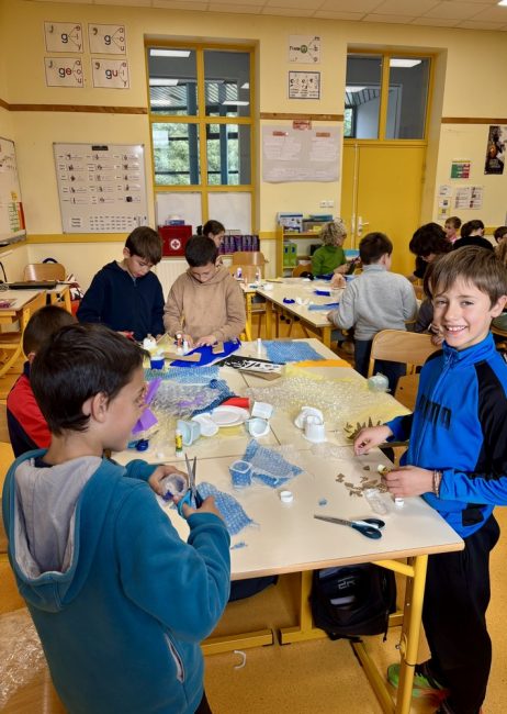 Une expérience aussi ludique qu’inspirante, qui a permis à chaque enfant de s’exprimer tout en prenant conscience de l’importance de protéger notre planète bleue. Répartis en quatre ateliers, les élèves ont relevé un défi artistique : donner vie aux splendeurs sous-marines à partir de matériaux recyclés. Pots de yaourt, cartons, papier bulle… Autant de trésors transformés en algues chatoyantes, coraux multicolores, poissons fantastiques et une multitude d’autres créations surprenantes.