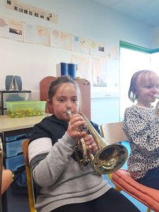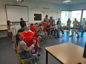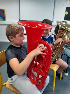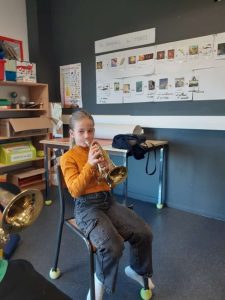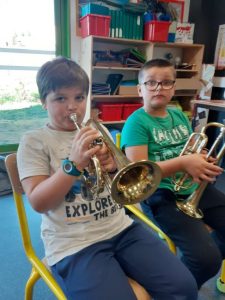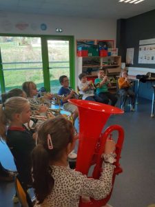 Le lundi 7 octobre, nous avons débuté la classe orchestre. Deux chefs d’orchestre sont venus à l’école. Il nous ont fait découvrir trois instruments : le trombone, la trompette et le tuba. Le lundi suivant, nous avons choisi l’instrument que nous préférions. Puis toutes les semaines, nous apprenons à en jouer pour faire un petit spectacle pour les parents en février. Les musiciens sont très sympathiques, ils s’appellent Loïc et Boris.