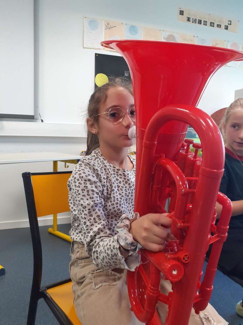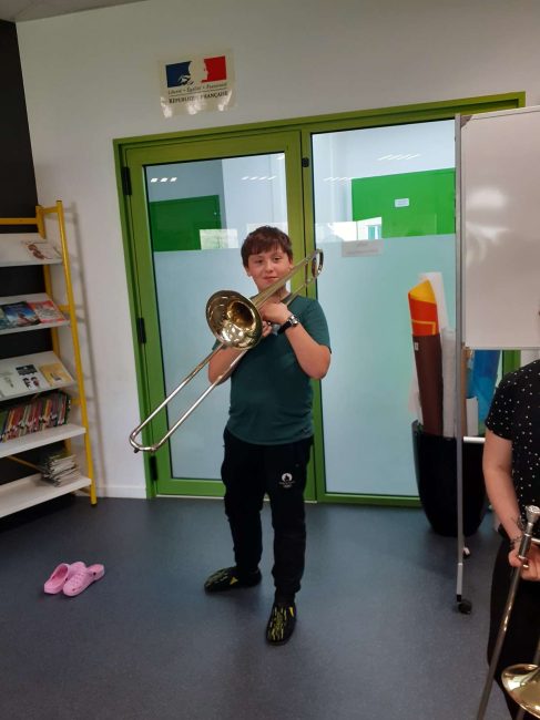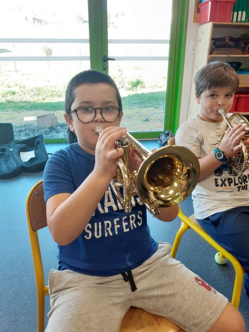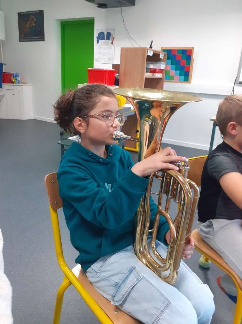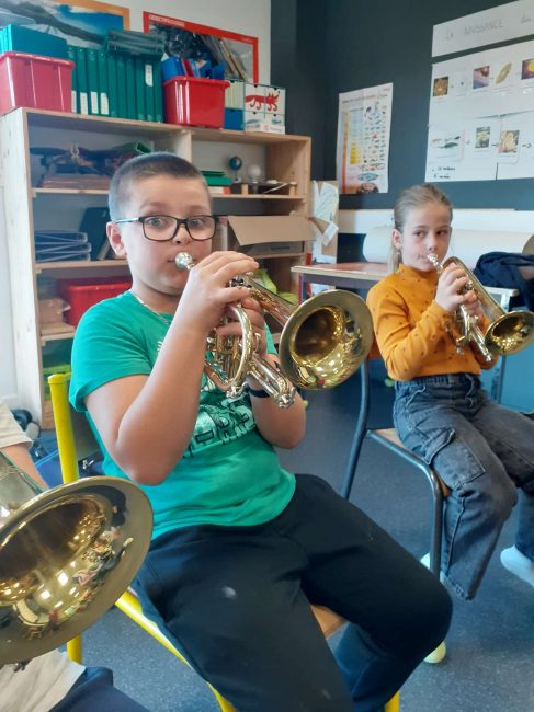 Le lundi 7 octobre, nous avons débuté la classe orchestre. Deux chefs d’orchestre sont venus à l’école. Il nous ont fait découvrir trois instruments : le trombone, la trompette et le tuba. Le lundi suivant, nous avons choisi l’instrument que nous préférions. Puis toutes les semaines, nous apprenons à en jouer pour faire un petit spectacle pour les parents en février. Les musiciens sont très sympathiques, ils s’appellent Loïc et Boris.