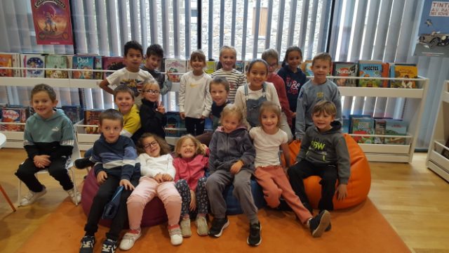 Environ 1 fois par mois, les CP se rendent à la médiathèque pour profiter d’un moment de détente avec des livres très différents, dans un espace agréable.