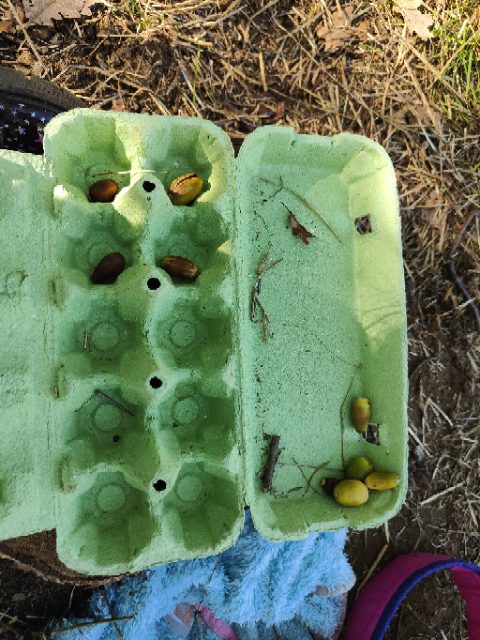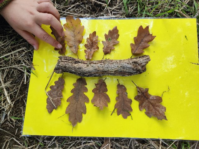« On a aussi fait des mathématiques : on a fabriqué une boîte à nombres avec une boîte de 10 objets naturels puis on s’en est servi pour faire du calcul : des additions et des soustractions dans la nature! »