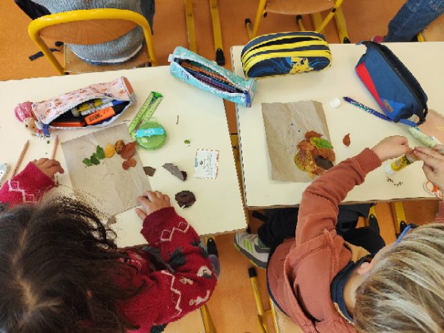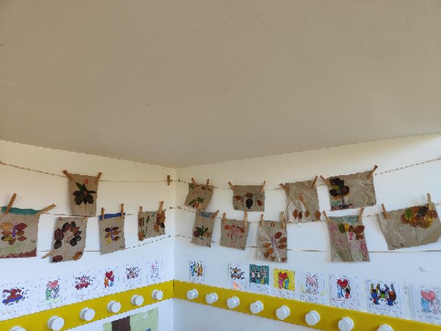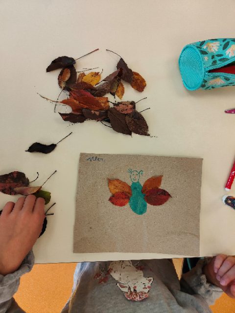 « Juste avant les vacances, on a ramassé des feuilles d’automne, on a fait le point sur le vocabulaire qu’on a appris (éphémère/abécédaire/suspension/cynorhodon…), on a écrit cet article et on a choisi notre arbre ressource…. on vous en dira plus au prochain article! »