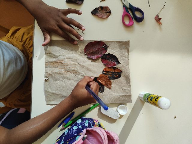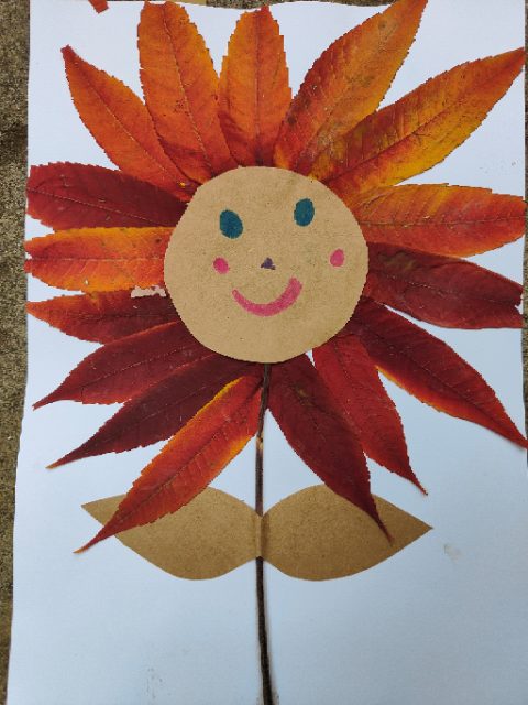 De retour à l’école, on a utilisé nos feuilles d’automne pour faire de jolis collages à la manière de ceux qu’Esther avaient faits chez elle : merci Esther pour cette belle idée!