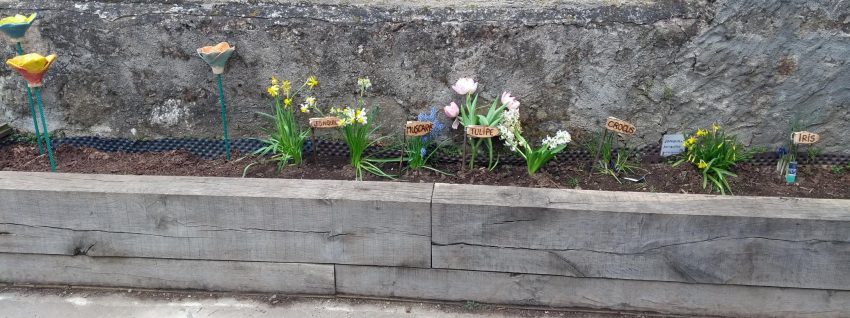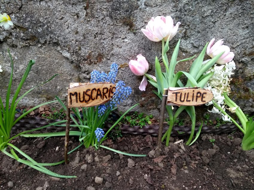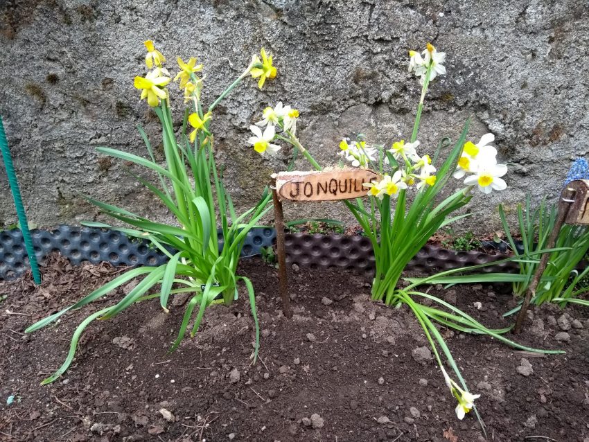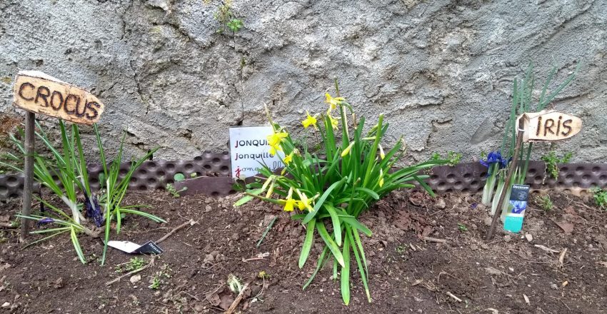Plantations dans la cour maternelle. En attendant de planter des légumes, les premières plantes à bulbe du printemps… Les jonquilles Les muscaris et les tulipes Les crocus, d’autres jonquilles et les iris.